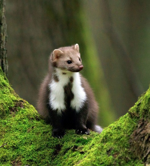 Den Steinmarder findet man häufig in der Nähe des Menschen. Sie haben graubraunes Fell und den weißen Kehlfleck. Sie haben eine Kopfrumpflänge von 40-55cm. Sie sind nachtaktiv und halten sich tagsüber in den Verstecken auf, wobei sie sehr Uhrzeittreu sind. Da sie Einzelgänger sind, sieht man sie lediglich zur Paarungszeit zu zweit. Die Paarung erfolgt im Sommer (Juni-August), wobei die Jungen (3-4) nach einer Keimruhe erst im März zur Welt kommen. Die Tragzeit beträgt ca. einen Monat. Schon nach ca. 2Monaten werden sie entwöhnt.