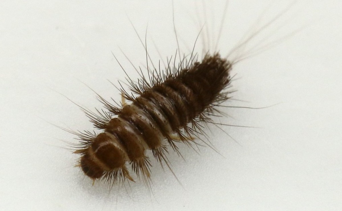 Zuvor genannte Speckkäfer sind die am häufigsten in Gebäuden anzutreffenden Speckkäferarten. Die ausgewachsenen Käfer erreichen eine Größe von 2-5mm. Sie sind flugfähige Käfer und kommen vereinzelt immer wieder mal hineingeflogen und legen ihre Eier in dunklen Ritzen ab z.B. hinter Fußleisten. Die Larven sind ca. 5mm groß und sehr behaart. Sie verfügen über Pfeilhaare, die bei einem starken Befall zu allergischen Reaktionen führen können.