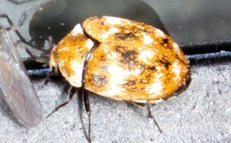 Der gemeine Speckkäfer wird 7-10mm groß. Sie sind auch flugfähig. Die Eiablage erfolgt am Nahrungssubstrat. Die Larven werden ca.15.18mm groß. Sie fressen ebenfalls Keratinhaltige Substanzen. Oftmals kommen sie an Kadavern vor.